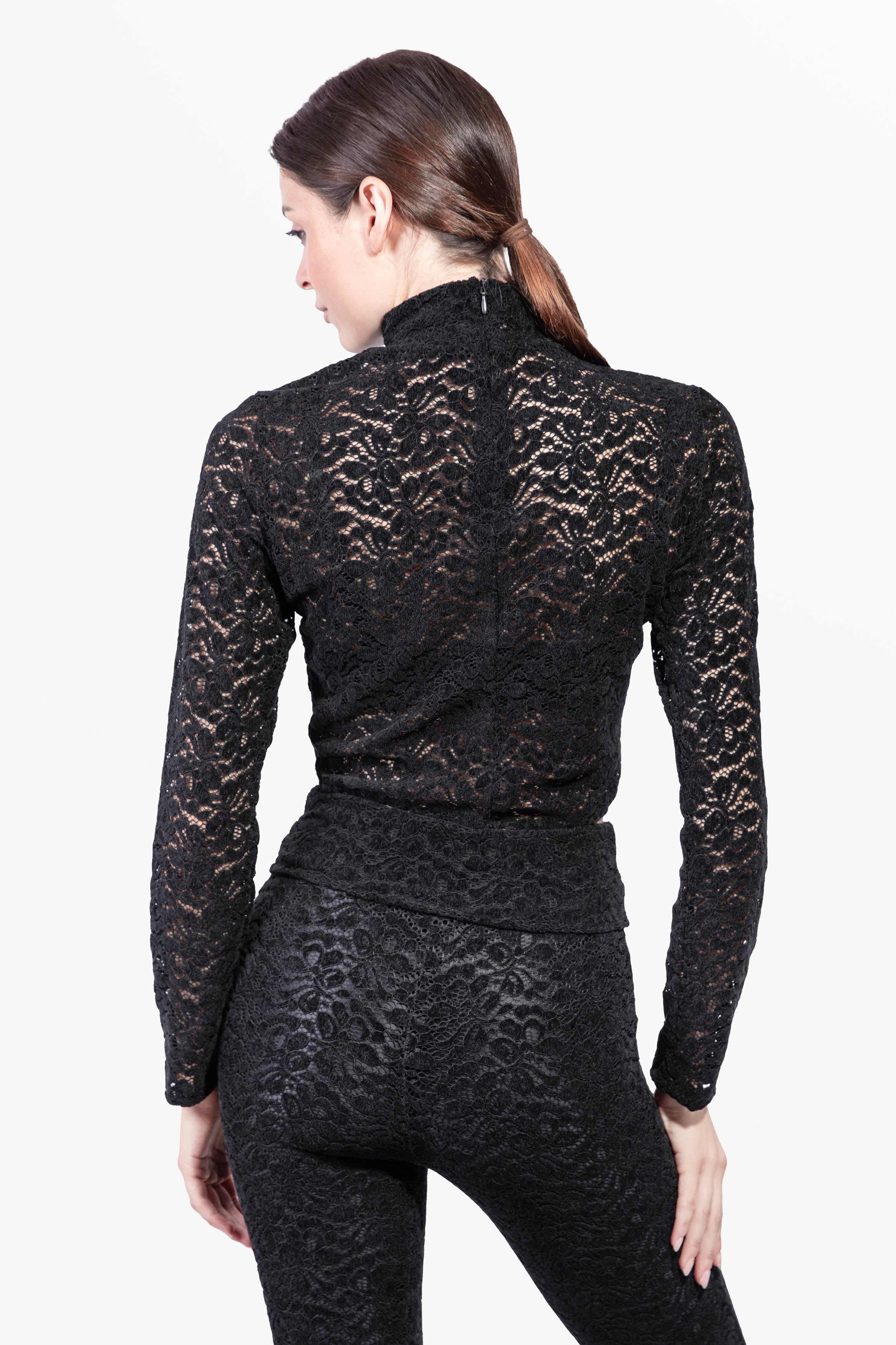 • Lupetto in pizzo di velluto elasticizzato con collo alto