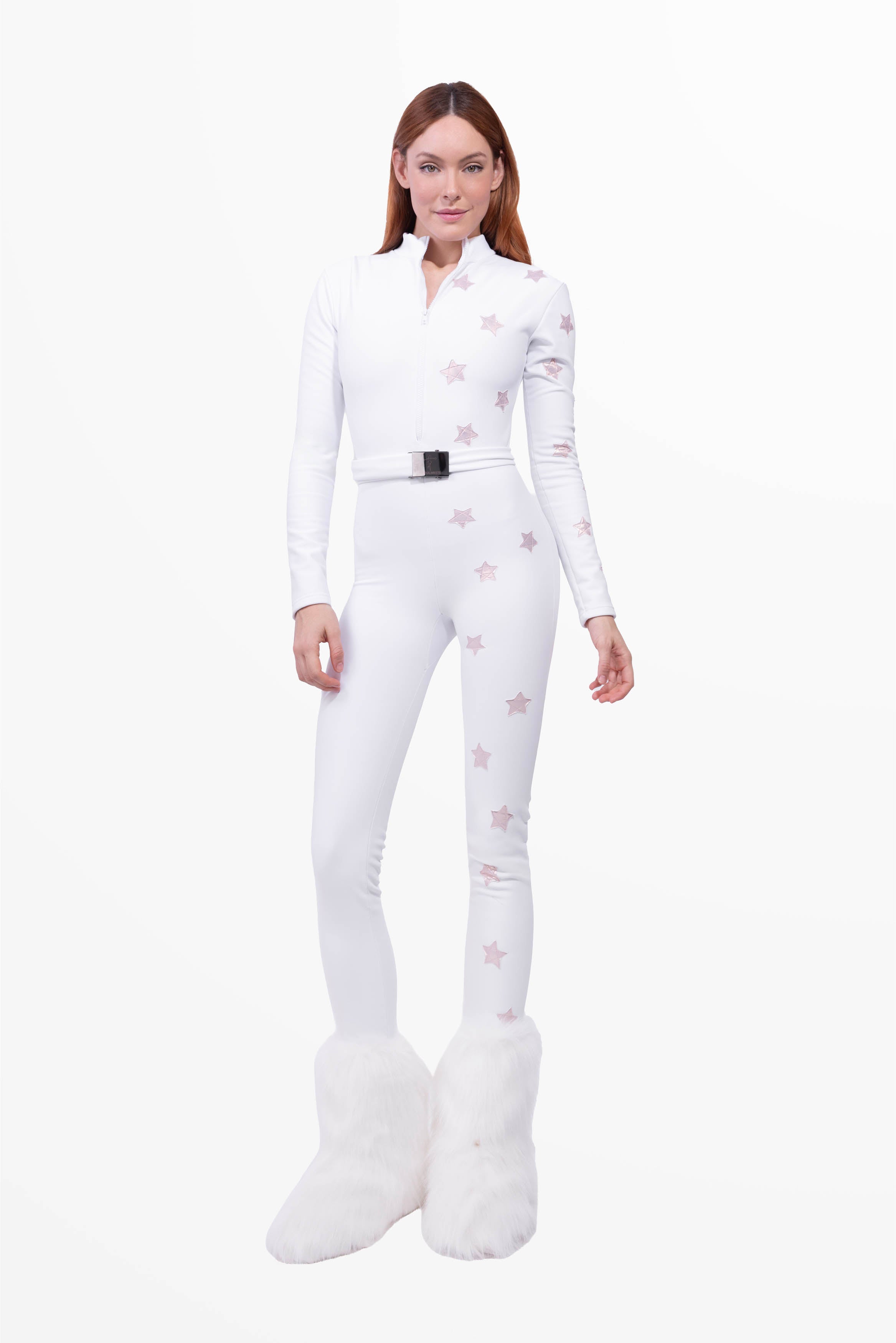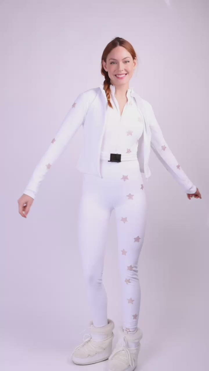 Una tuta da neve scenografica, femminile e straordinariamente elegante, pensata per brillare sulle piste e nei momenti après-ski.