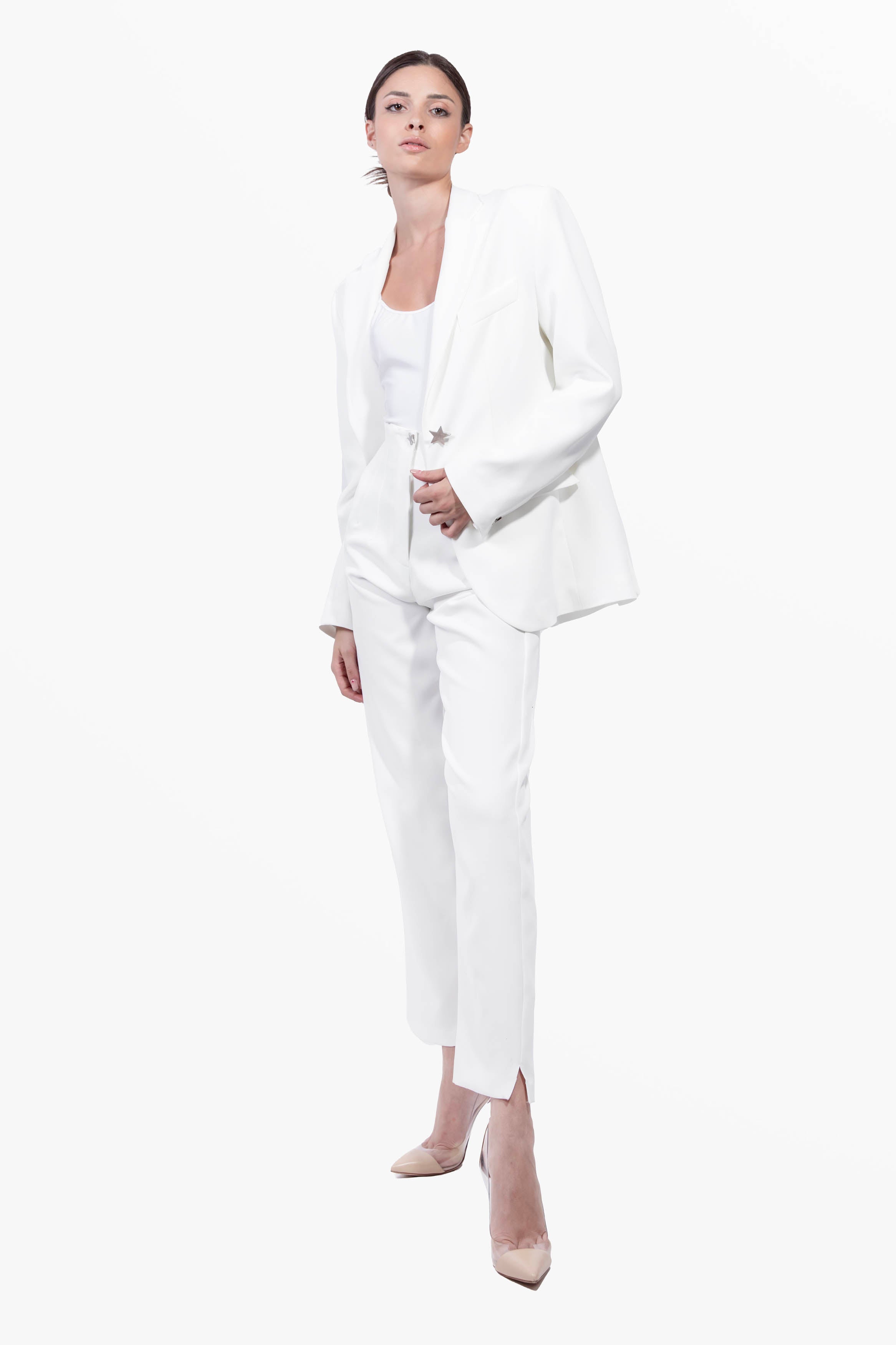 Ideale per creare look monocromatici sofisticati o spezzare con capi più scuri. Da indossare con un bustier, una t-shirt, un body o sulla pelle nuda.