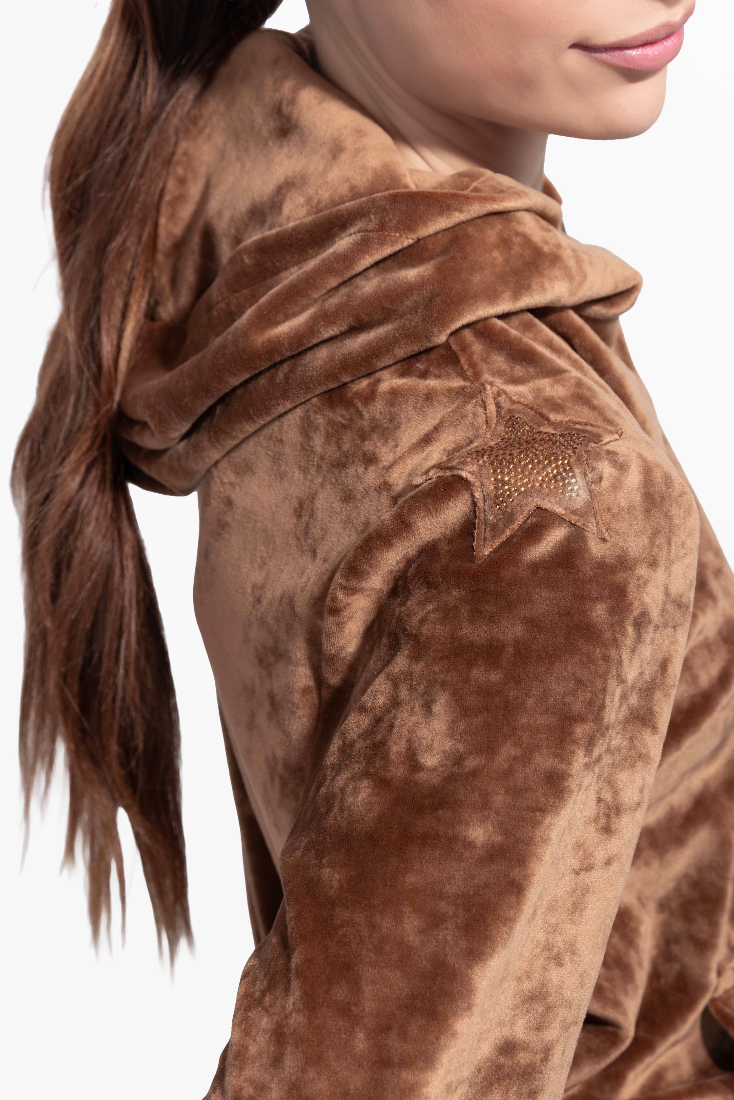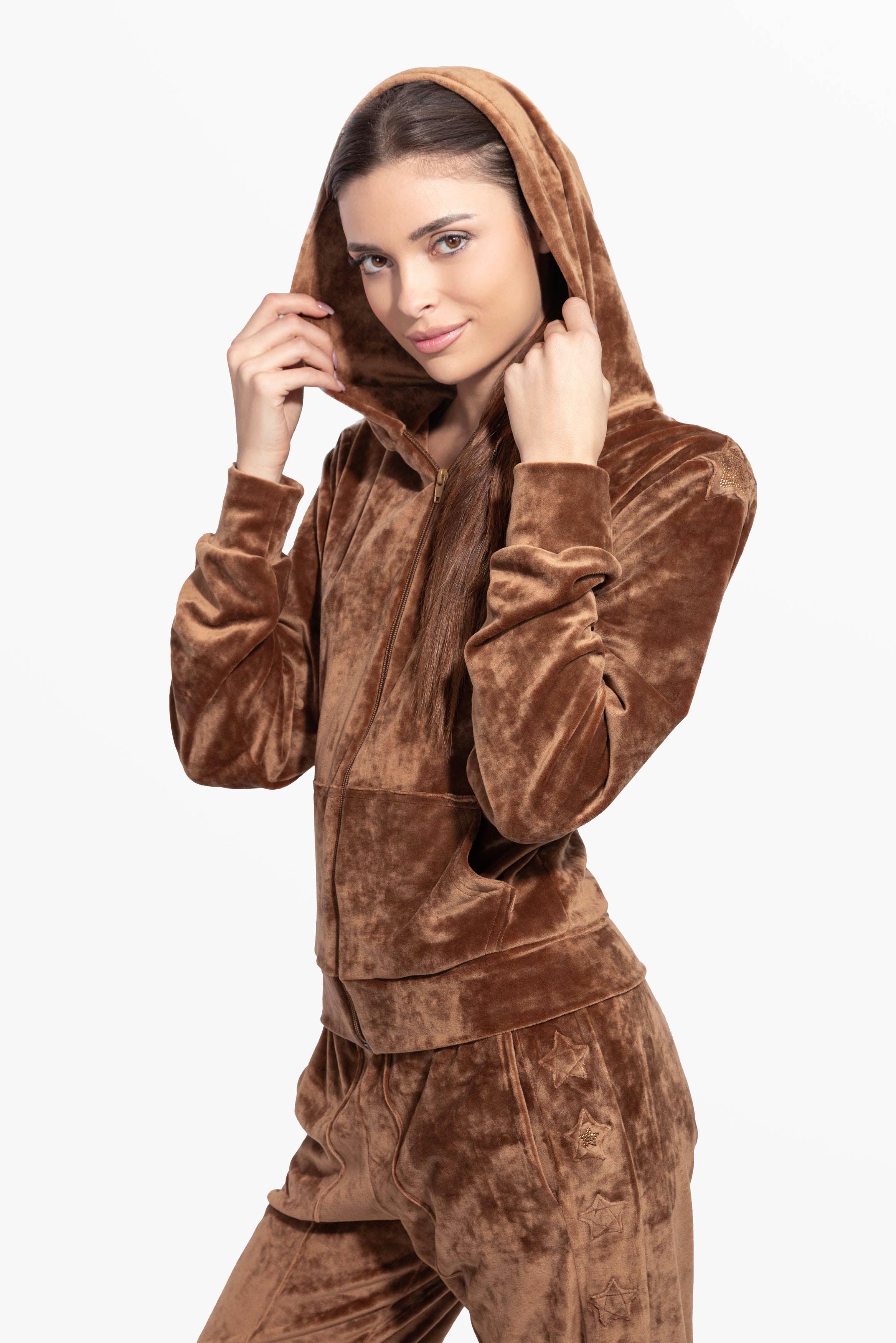 Il morbido velluto soft touch rende la tuta incredibilmente confortevole da indossare, mentre lo stile Equilibriste ti farà risaltare ovunque tu vada.