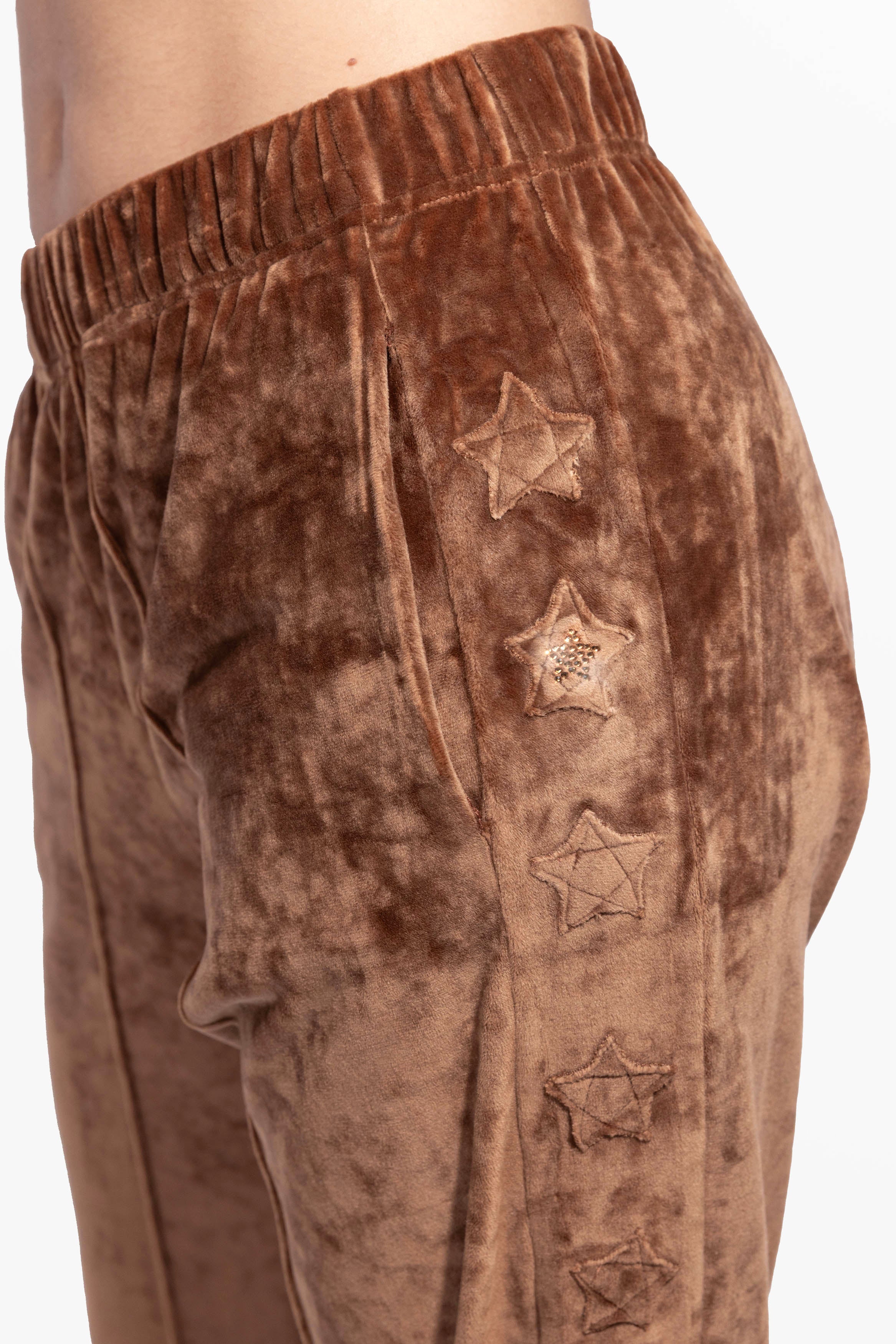 Morbida e calda felpa con stelle ricamate ed elastico in vita e stelle applicate sulla gamba.