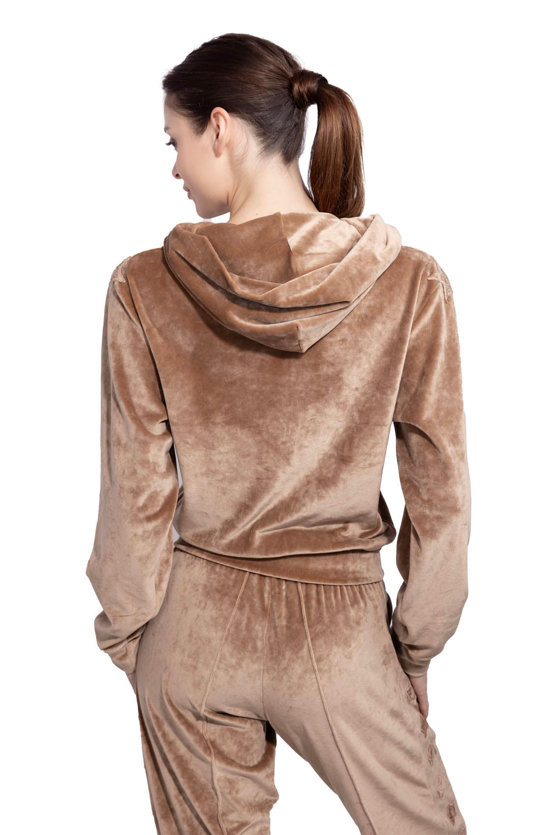 Velour tracksuit, without an elastic waistband, to maintain the softness that only certain garments can offer, the kind of garments that feel like a warm embrace on your body when you wear them.