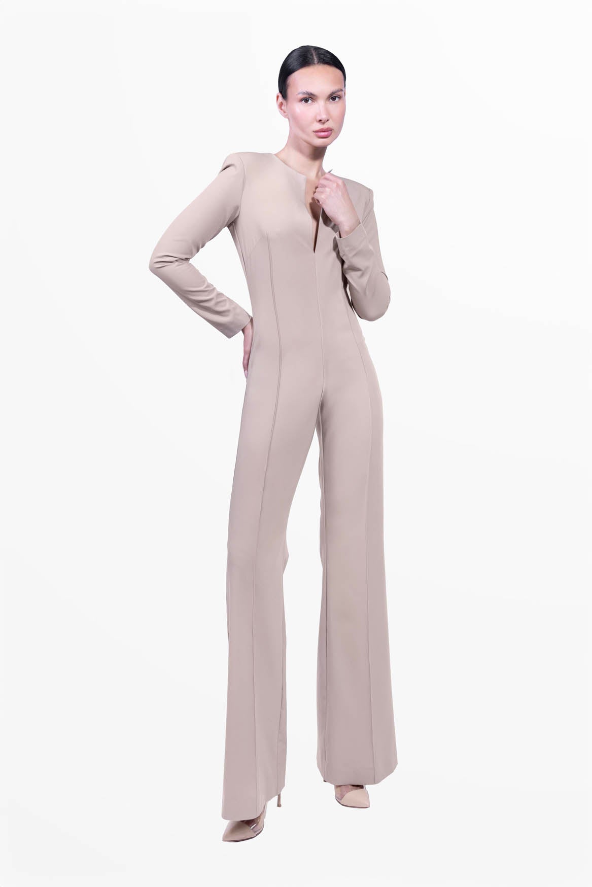 The Grace Jumpsuit, gently fitted at the waist and soft in the lower part with its flared trousers, is a versatile Jumpsuit suitable for all women with character.