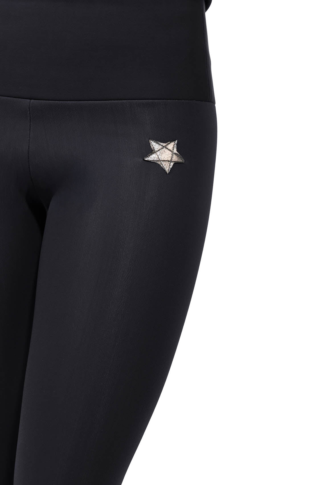 Un dettaglio unico e accattivante è la presenza di una serie di stelle fluo applicate su una delle gambe, che aggiunge un tocco di originalità e personalità al pantalone.